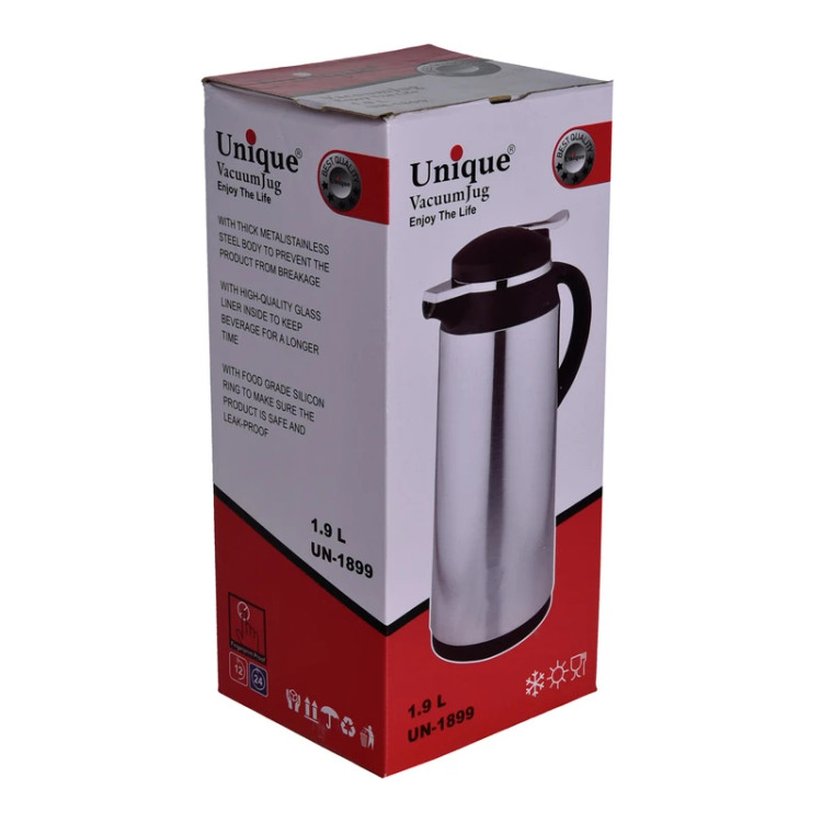 فلاسک یونیک کد 1899 از جنس استیل با کیفیت ساخته شده است . این فلاسک میتواند نوشیدنیهای شما را تا 12 ساعت گرم و تا 24 ساعت سرد نگه دارد. از این به بعد، نگران نباشید که قهوه، چای، آب و یا هر نوشیدنی دیگری که دوست دارید، خنک یا گرم بماند فقط با خودتان فلاسک یونیک را ببرید و لذت ببرید.گنجایش این محصول 1.9 لیتر می باشد.