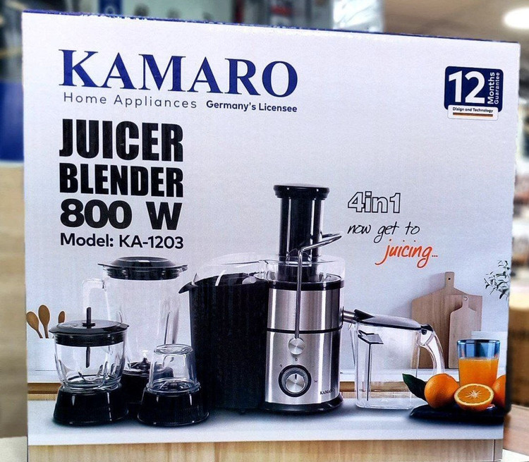 آبمیوه گیری چهار کاره کامارو KA-1203 با کیفیت ساخت بالا، کاربری آسان، طراحی چندکاره، تحویل سریع و گارانتی ۲۴ ماهه، بهترین انتخاب برای کسانی است که دنبال یک دستگاه همهکاره، با دوام و با قیمت مناسب برای آشپزخانه مدرن خود هستند.