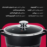 قابلمه تک طرح ایتالیا سایز 16 روکشی از جنس گرانیت نچسب دارد که به آشپزی آسان و بیدردسر کمک میکند. درب این محصول از جنس پیرکس است.